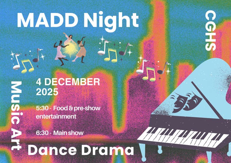 Join us on December 4th in the MPC for MADD Night, a celebration of our students’ talents in Music, Art, Drama, and Dance. Experience an evening filled with creativity and outstanding performances, highlighting the passion and skills of our creative and performing arts students.